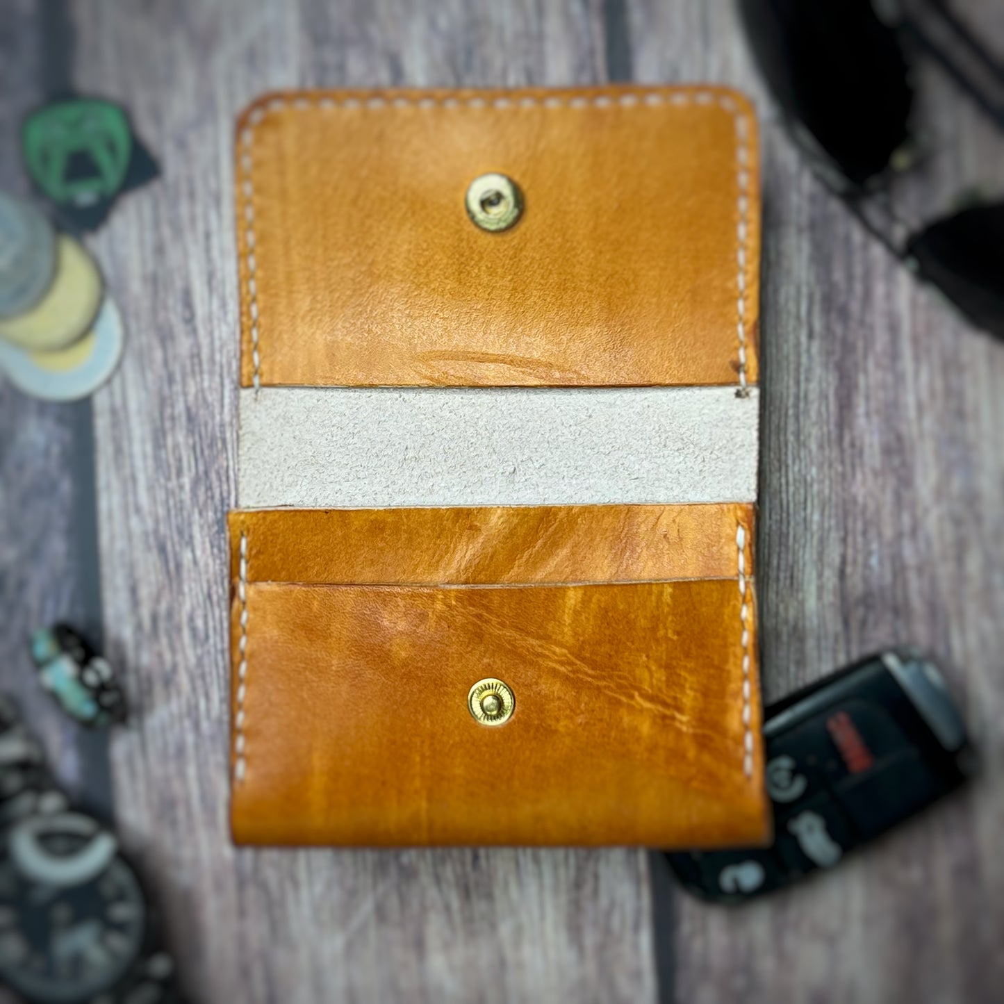 "Un poco más de almacenamiento": esto es algo que he escuchado bastante de los compradores, así que creé el tarjetero Locust con esto en mente. Tienes suficiente espacio en este para un montón de tarjetas, realmente podrías poner hasta 25 tarjetas en este diseño si realmente quisieras, sin embargo, está diseñado para contener de 3 a 6 tarjetas en los bolsillos y aún tener espacio para algunas. billetes o recibos doblados.